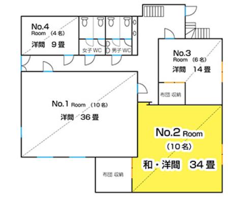 | キャンプエコノミールーム1, 2 | 10 | 40,000円 | 45,000円 | 50,000円 | 60,000円 | 11名以上 4,000円 |